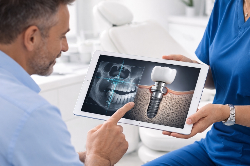 Este análisis permite determinar si el implante puede colocarse directamente o si es necesario realizar previamente algún tratamiento para preparar la zona.